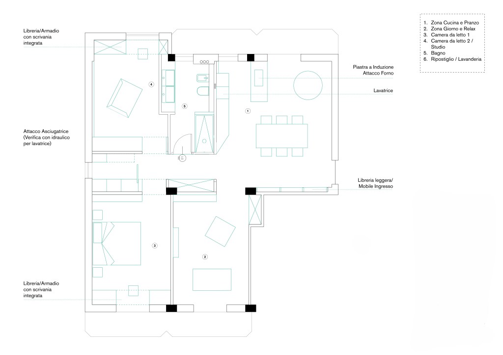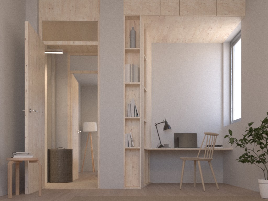 The project draws conceptual inspiration from Antonello da Messina’s Saint Jerome in His Study, evoking a sense of contemplative interiority and layered presence. Like the painting, the renovated apartment becomes a place where objects and occupied space are in constant, reciprocal dialogue: lived things frame lived experiences. Spatial sequences are calibrated to allow glimpses across functions, enabling a perceptual continuity that resists strict segmentation.