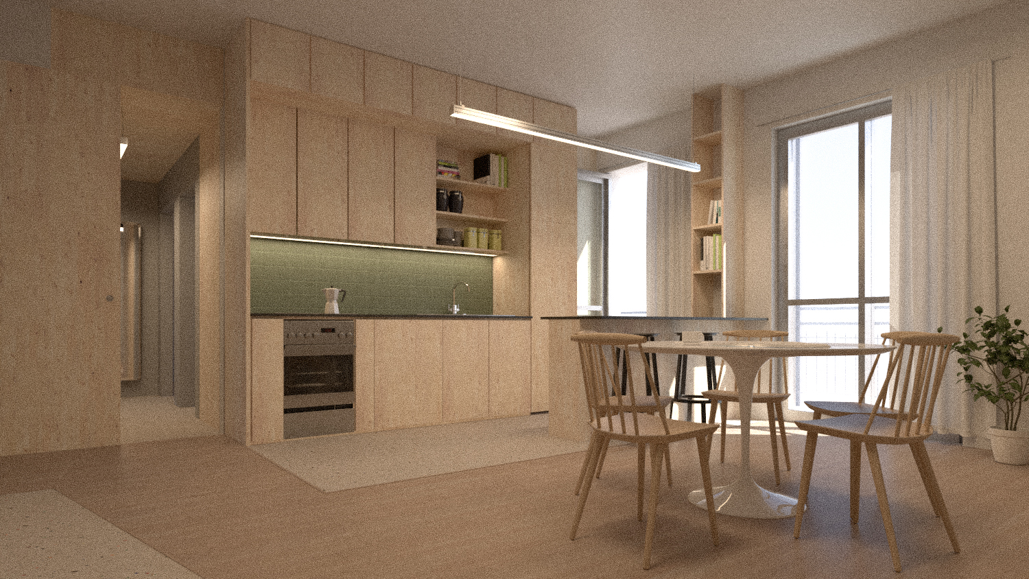 The Casa Sarca renovation reimagines a 1960s apartment as an open, continuous space, using timber not as ornament but as a device to shape thresholds and define inhabited walls. At its core is an effort to fluidly connect interior zones while preserving and activating the memories embedded in the existing dwelling. The design was developed through an ongoing dialogue with the clients, a young couple living between Lausanne and Milan, whose personal objects and spatial recollections became key reference points in rethinking the space.