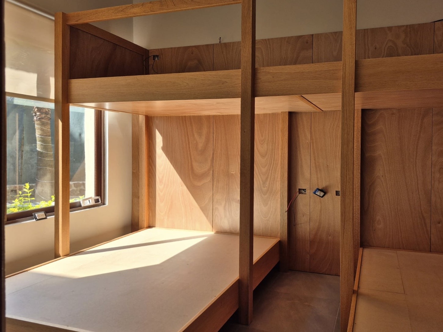 The project is a custom-made wooden bunk bed designed for the renovation of a holiday home in Valle de Bravo, Mexico. Conceived as a sleeping object, the bunk bed optimizes a limited space while creating a distinct spatial experience. Warm timber tones and carefully proportioned volumes create a sense of compression and expansion, guiding the body through a sequence of spatial conditions that oscillate between intimacy and openness.