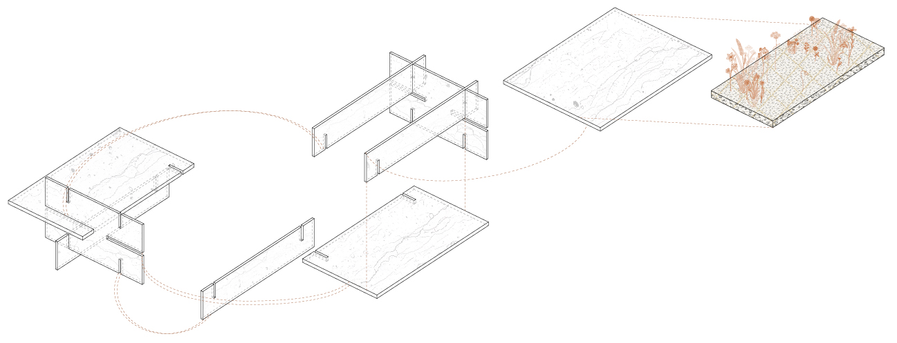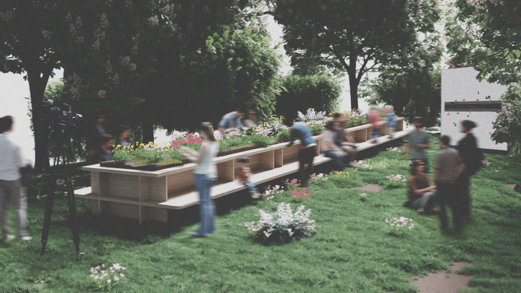 The table functions simultaneously as a cultivated surface and as a social space. Visitors are encouraged to sit, talk, rest, or simply remain still, observing the gradual transformation of the garden as growth unfolds at its own pace. Time is slowed down, and attention shifts from immediate results to processes of becoming. The garden thus creates a condition where human presence is measured not through intensity, but through duration and repetition.
